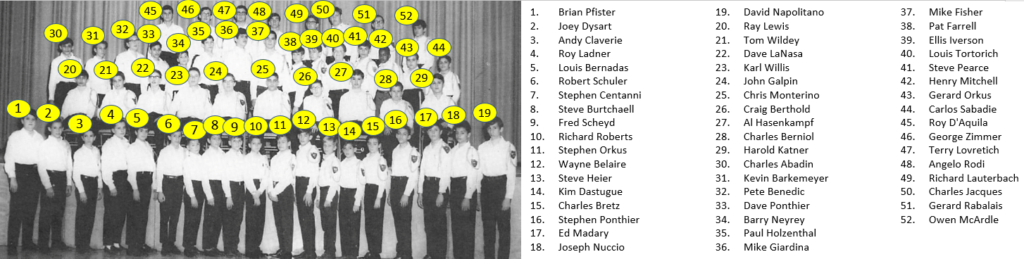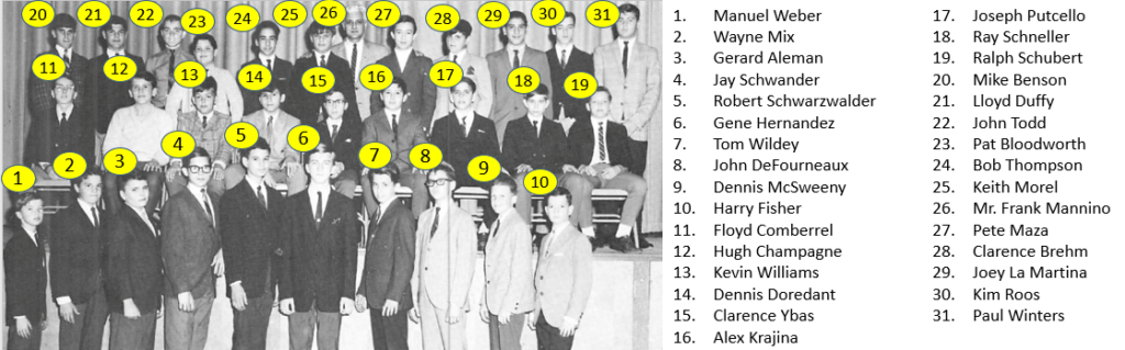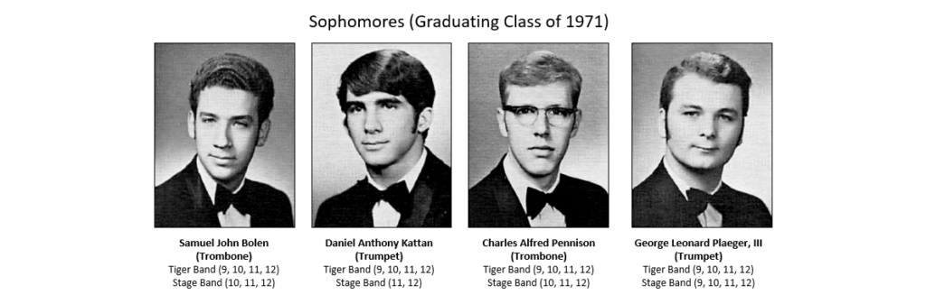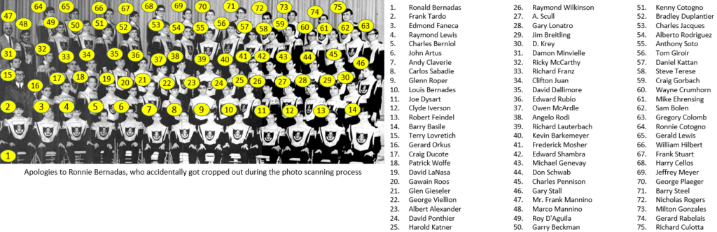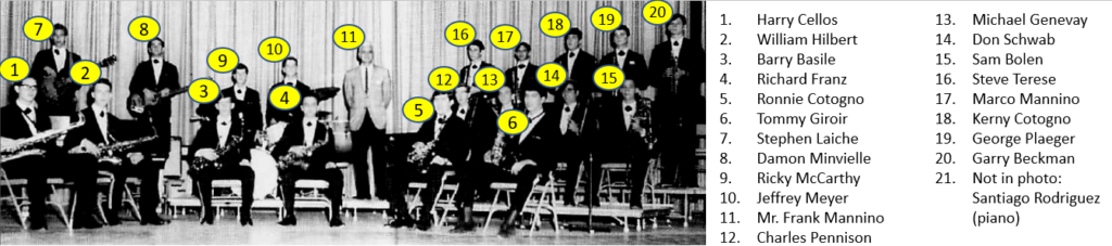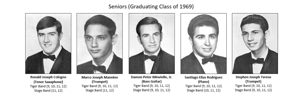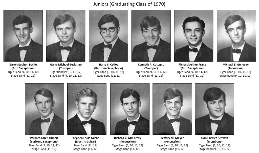 Apologies if I got the band participation years wrong. These either came from the yearbook, or my best data collection efforts from analyzing available photographs. Some data is missing, example Marco Mannino was likely in the Stage Band in the 9th grade, but the yearbook did not include Stage Band participation for Marco, and I have no photographic evidence to establish that fact.